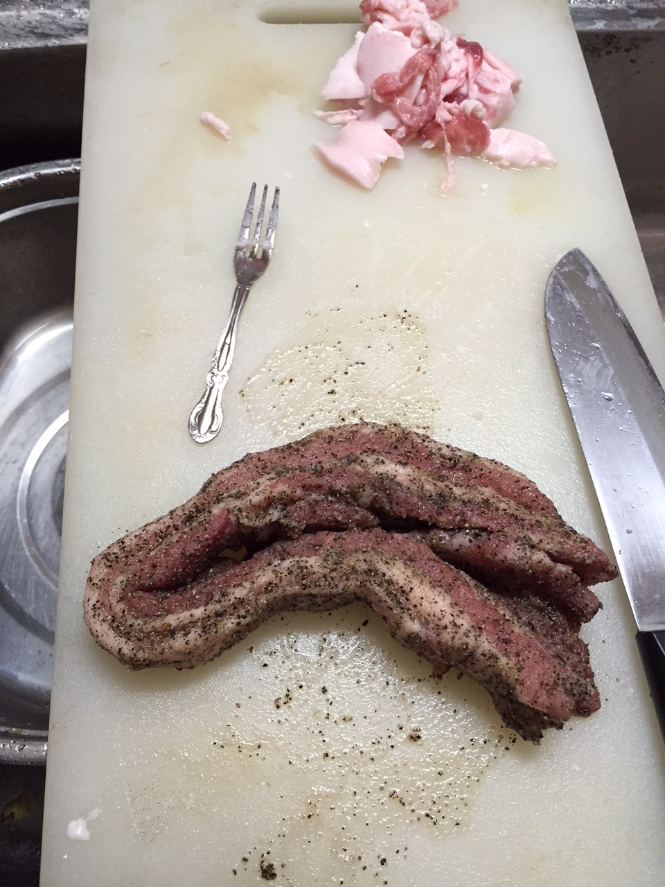 だから、本来のベーコンはそれはそれは塩辛いものであったのではないかと、出来上がった