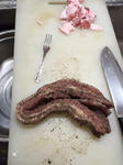 塩抜きがちゃんとできているか確認するために、肉の端を斬って、焼いて食べてみてください。