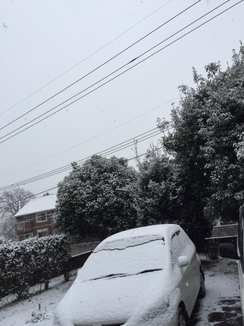 国道はまだマシでしたが、住宅街に入ると道路は真っ白。いつタイヤがスリップおこすかドキドキです。