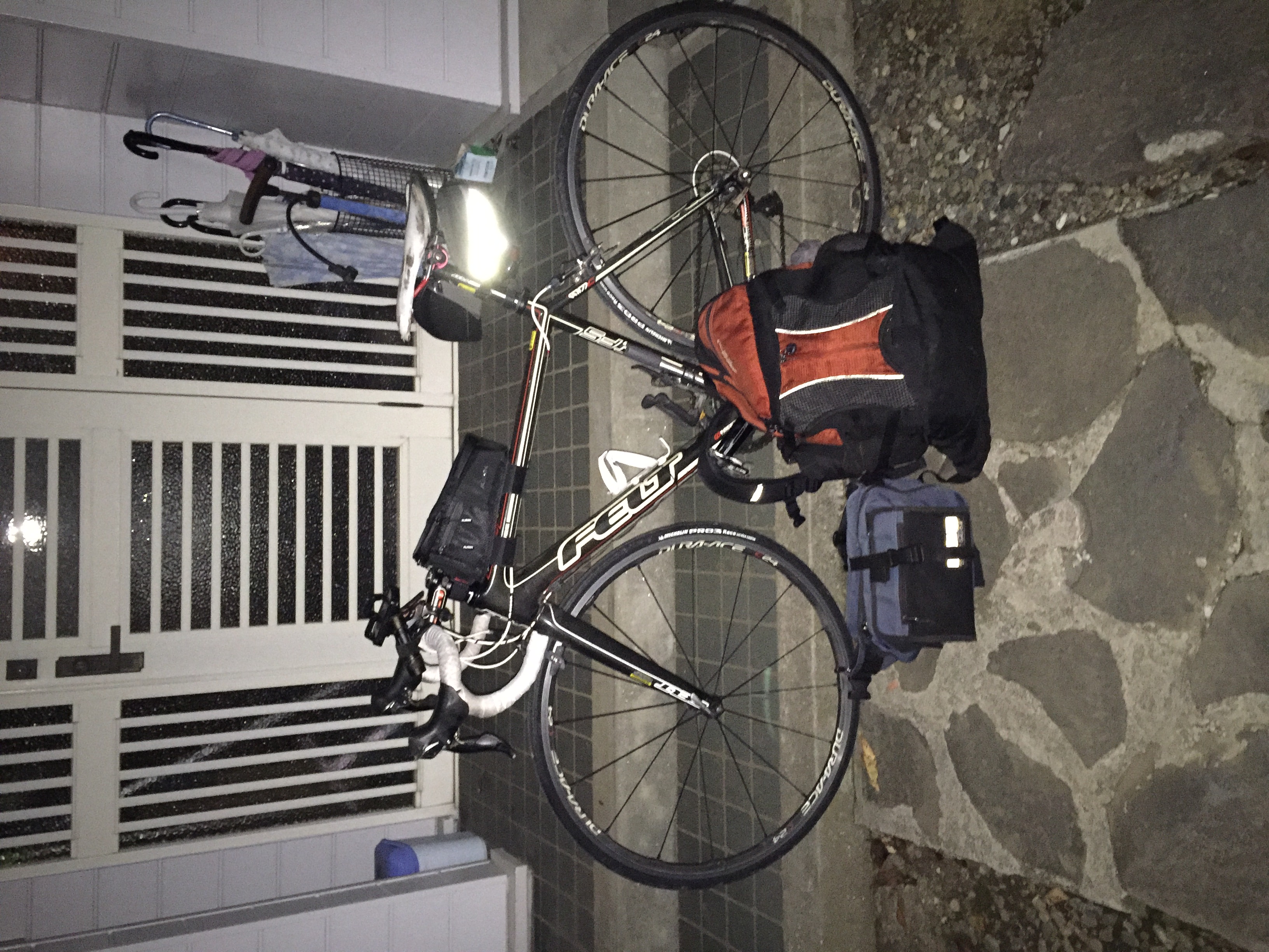 5時15分、サイクルコンピュータ(速度や距離を測る機械)が無くなっていることに気がつき帰宅。昨夜のメンテナンスの時に落としたのか、駐車場にて発見。