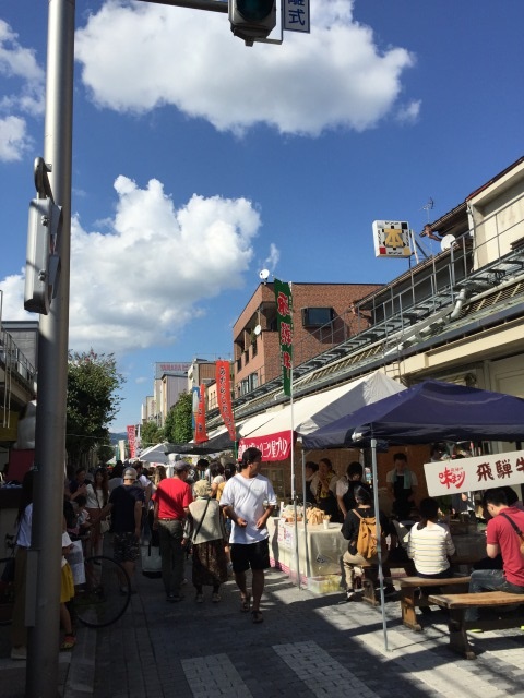 たくさんので店が押し並び、僕は五平餅と飛騨牛串焼きを食べた。美味い!