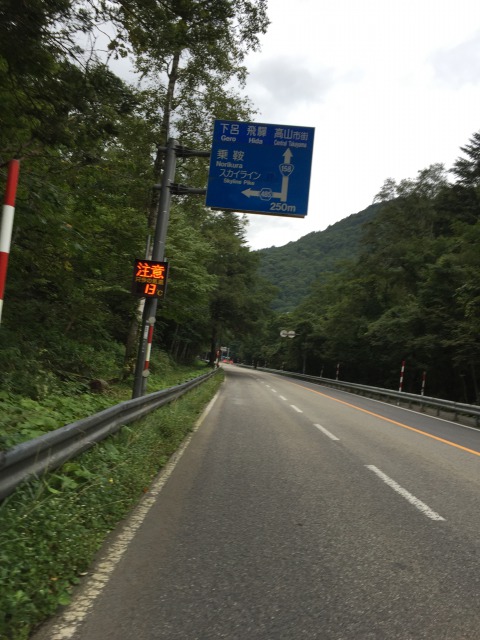 高山市から平湯方面へ行くときはひたすら登りでしたが、高山市へ戻るときはほぼ下りだったので、乗鞍畳平から2時間程度で高山市内に到着。